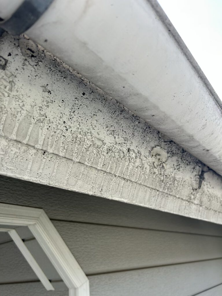 破風板部分は著しく既存塗膜の剥がれがありました。